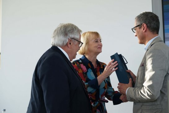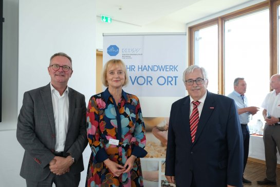 Bild links: Der Präsident der Handwerkskammer Mittelfranken, Thomas Pirner, die Geschäftsführerin der KHW, Manuela Wohlert, und Kreishandwerksmeister Achim Hanisch (v.l.n.r.) auf der Doppelveranstaltung bestehend aus Jahreshauptversammlung und Sommerempfang. © KHW Nürnberg