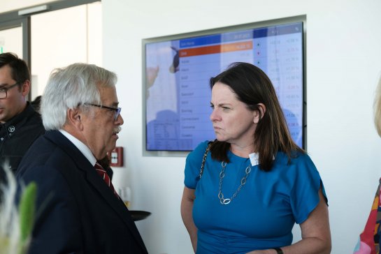 Bild rechts: Kreishandwerksmeister Achim Hanisch im Gespräch mit der Regierungspräsidentin von Mittelfranken, Dr. Kerstin Engelhardt-Blum. © KHW Nürnberg