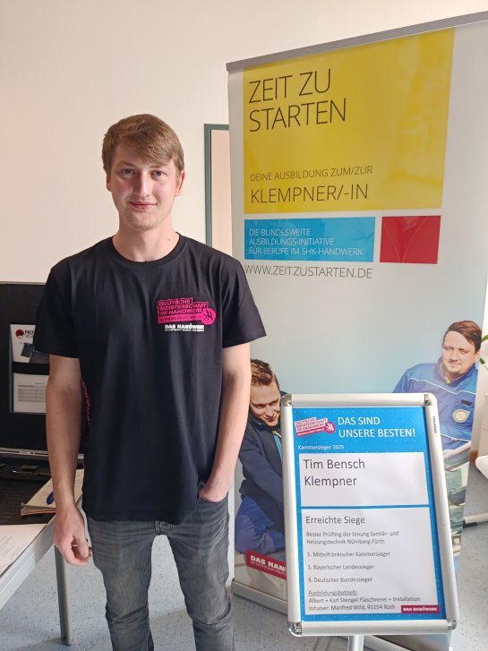 Ein größeres Forum auf der Börse bekam in diesem Jahr der Wettbewerb „Deutsche Meisterschaft im Handwerk – German Craft Skills“. Mehrere Sieger dieser Leistungsschau waren vor Ort und berichteten den Interessierten von dem spannenden Wettbewerb und ihren beruflichen Erfahrungen. Bei der Meisterschaft, die es bereits seit den 1950er-Jahren gibt, treten jährlich Absolventinnen und Absolventen aus unterschiedlichen Handwerksberufen mit ihren Arbeitsproben und Gestaltungslösungen an. Neben dem Sieger im Gerüstbau, dem besten Steinmetzgesellen und dem Gewinner im Gebäudereiniger-Handwerk war auch Tim Bensch vor Ort. Der mittelfränkische Geselle, der bei einem Flaschner- und Installationsbetrieb in Roth gelernt hat, darf sich aktuell „Bester Prüfling der Innung Sanitär- und Heizungstechnik Nürnberg-Fürth“ nennen und hat es mit seiner Leistung bis zum Bundessieger des gesamtdeutschen Wettbewerbs in seinem Handwerk geschafft. „Ich mag meinen Beruf sehr und freue mich über die Auszeichnung“, sagt der junge Mann bescheiden. „Besonderen Spaß macht es mir aber auch, meine Erfahrungen an Jüngere weiterzugeben und so vielleicht den einen oder anderen neuen Azubi zu gewinnen“, fügt er hinzu.