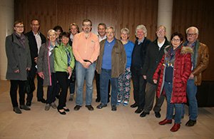 „Ein Meter Papier wiegt etwa 28 Kilogramm“, erklärt Peter Halicska den Teilnehmern des Handwerkergesprächs die besonderen Anforderungen, die an das Gebäude gestellt werden. „In jeder Decke sind deshalb 175 Tonnen Stahl verbaut. Die Bodenplatte könnte ein elfstöckiges Hochhaus tragen.“ Der wichtigste Faktor bei der Archivierung von Dokumenten sei jedoch die Klimatisierung, wie Halicska erläutert. Die Lufttemperatur müsse gleichermaßen wie die Luftfeuchtigkeit konstant sein. Ideale Lagerbedingungen – 16 bis 20 °C und 45 bis 55 Prozent Feuchtigkeit – werden durch einen komplexen Wandaufbau auf ganz natürliche Weise möglich. Die Vielfalt der umfangreichen Archivbestände machte der Archivamtsrat anhand einzelner Vorzeigeobjekte deutlich. Eine große, mehrere Kilo schwere Musikhandschrift aus der vorreformatorischen Zeit – in Leder gebunden und mit schlichten Messingbeschlägen verziert – beeindruckte dabei besonders.