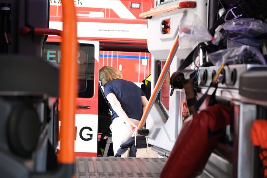 Nach der Besichtigung der Innenräume ging es für die Besucherinnen und Besucher im Rahmen der KHW-Veranstaltung unter anderem in die sechs Fahrzeughallen, die Logistikräume, die hauseigene Schreinerei und den Techniktrakt. Hier erfüllte sich für den ein oder anderen tatsächlich ein Kindheitstraum, als Stefan Zink einen Löschzug aus drei Fahrzeugen im Detail vorstellte – Fotoandenken hinterm Steuer inklusive.