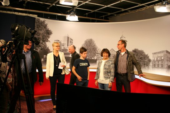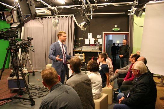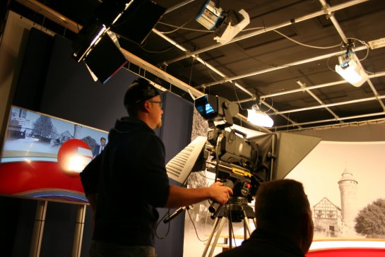 Das Handwerkergespräch der Kreishandwerkerschaft (KHW) Nürnberg Stadt und Land ermöglichte den Teilnehmern dieses Mal einen Blick hinter die Kulissen des Franken Fernsehens. Claudia Grande und Rainer Skodda, Sales Manager bei TVF Fernsehen in Franken, erzählten über die Geschichte und führten die Gäste durch die Redaktion des Lokalsenders, der vor 25 Jahren zum ersten Mal auf Sendung ging. Mit Einblicken in die Maske, den Schnitt und die Regie ging es dann direkt ins Studio. Als Highlight konnten die Teilnehmer live bei der Aufzeichnung der Nachrichtensendung „Guten Abend Franken“ mit dabei sein. Nachdem die Kameras richtig eingestellt und die Teleprompter-Texte auf den neuesten Stand gebracht wurden, beginnt der Dreh. Die Moderatoren Adrian Roser und Corinna Kleinekoenen stimmen sich in den Werbepausen und Beiträgen immer wieder mit der Regie ab, denn die Sendung muss auf die Sekunde genau 30 Minuten lang sein. Im Anschluss an die Aufzeichnung stand Moderator Adrian Roser den interessierten Studiogästen noch Rede und Antwort.